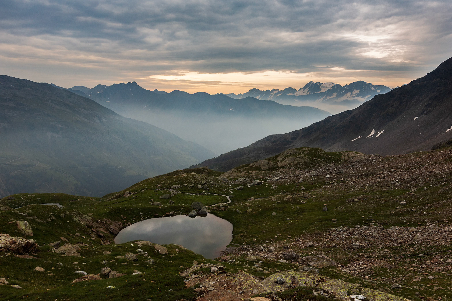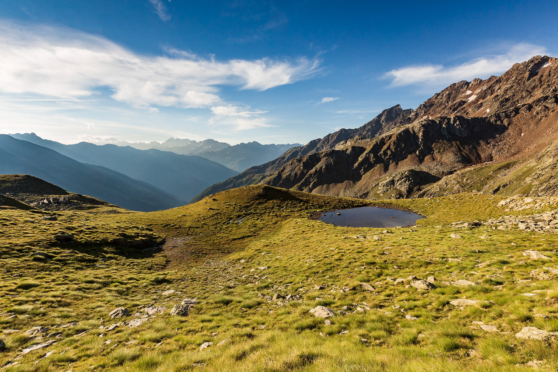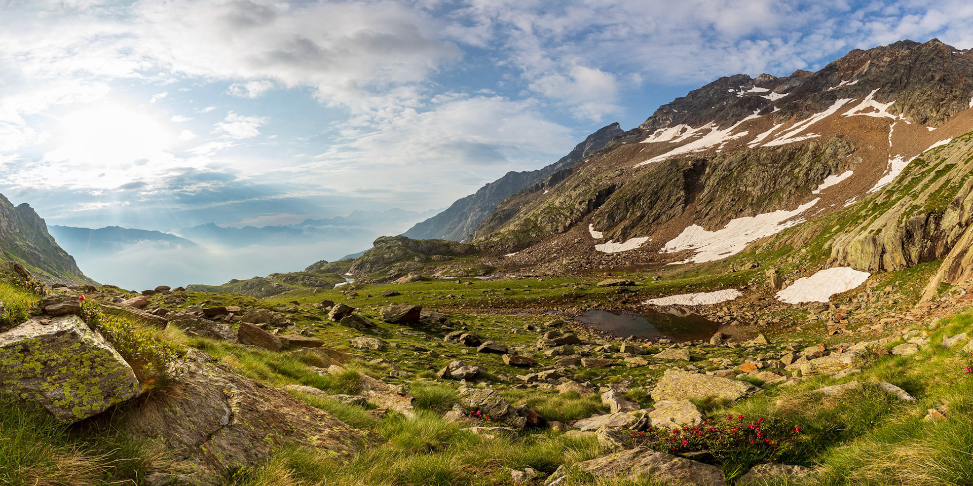 La Valle delle Messi è una delle vallate laterali più suggestive dell’Alta Val Camonica. Si sviluppa sul versante bresciano del Passo Gavia, incastonata tra la poderosa dorsale che sale verso Punta di Pietrarossa e i rilievi che la separano dalla vicina Val Canè. È una valle ampia e luminosa, caratterizzata da pascoli d’alta quota, boschi di larici e abetaie, e da una serie di piccole conche glaciali che ospitano numerosi laghetti alpini.