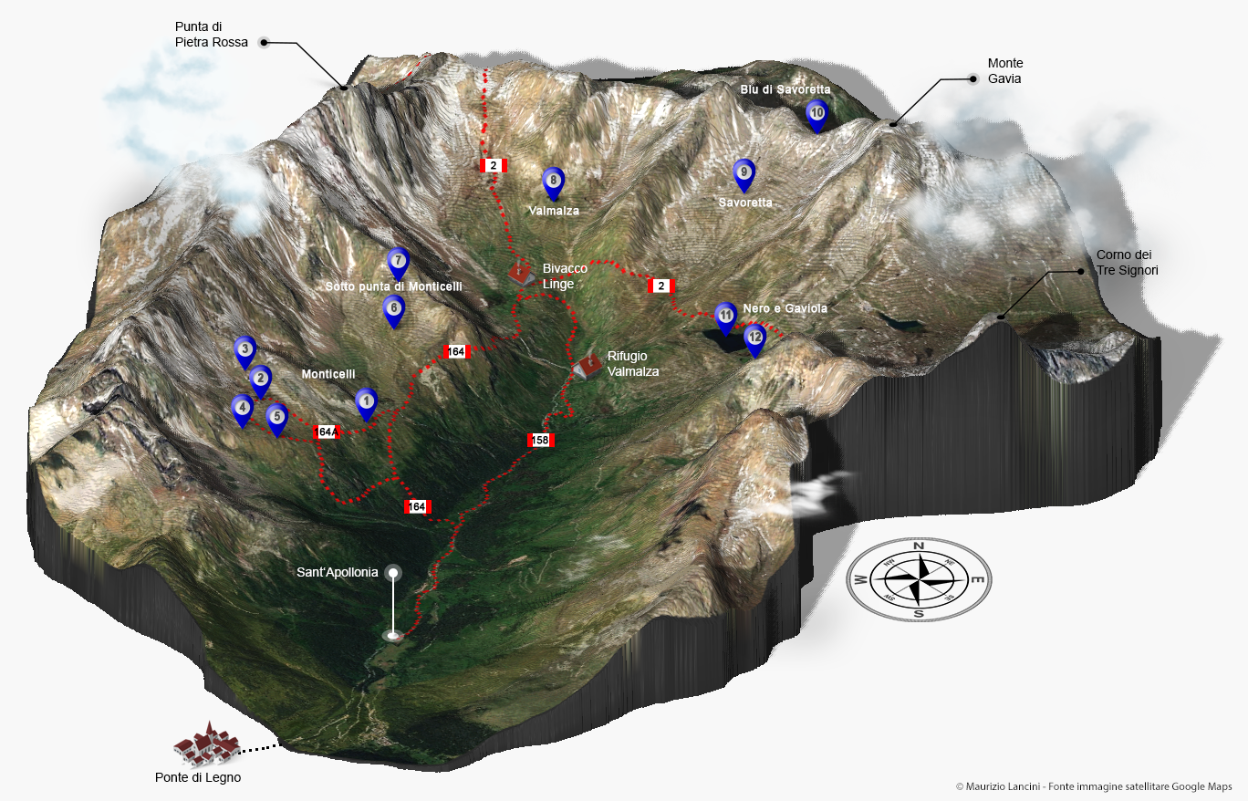 Raggiungerla è semplice: superato l’abitato di Ponte di Legno, si prosegue lungo la strada del Passo Gavia fino alla località Sant’Apollonia, dove si trovano parcheggi e l’imbocco dei principali sentieri escursionistici. Da qui si può esplorare l’intera valle e raggiungere i suoi ambienti più suggestivi, dai rifugi ai laghi, fino alle creste panoramiche che la sovrastano.