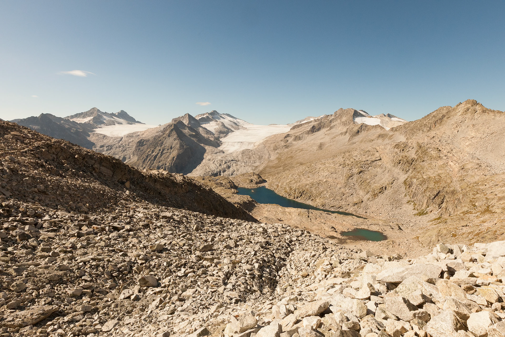 Ampio lago alpino adagiato ai piedi del Ghiacciaio del Mandrone, poco sotto il Passo di Lago Scuro, in una zona di grande fascino e straordinaria panoramicità. L’area è oggi facilmente raggiungibile grazie alla recente funivia che conduce fino al Passo Presena, rendendo accessibile un ambiente di alta montagna di rara bellezza. Attorno al Lago Scuro si distribuiscono diversi laghetti minori, che arricchiscono ulteriormente il paesaggio.