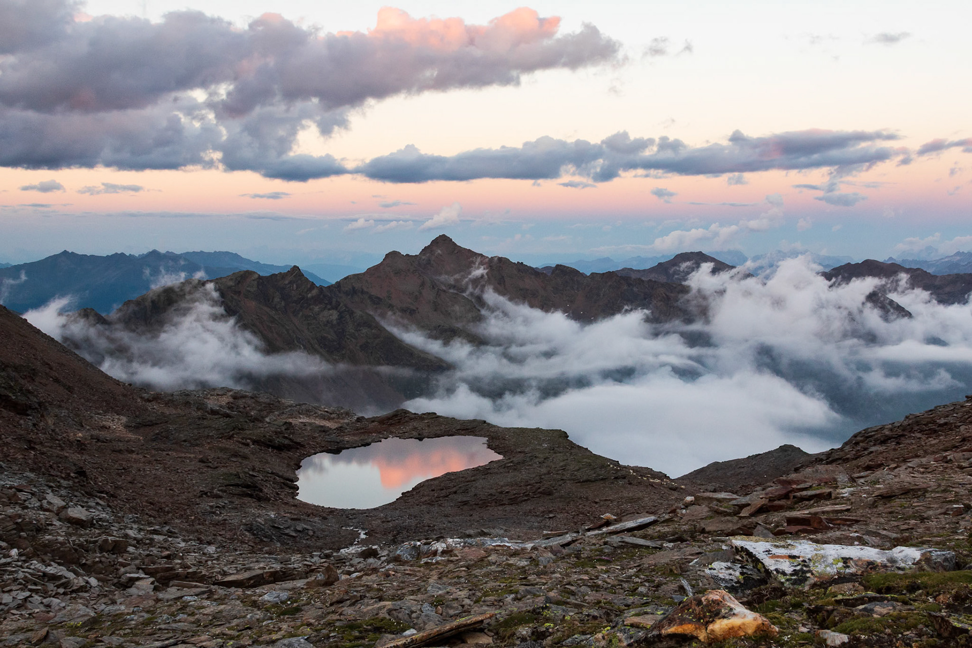 L’elevata altitudine regala un panorama particolarmente ampio e suggestivo, soprattutto per chi decide di salire ancora in direzione della Cima di Caione. Questo rende il laghetto un soggetto fotografico di grande interesse sia all’alba sia al tramonto.